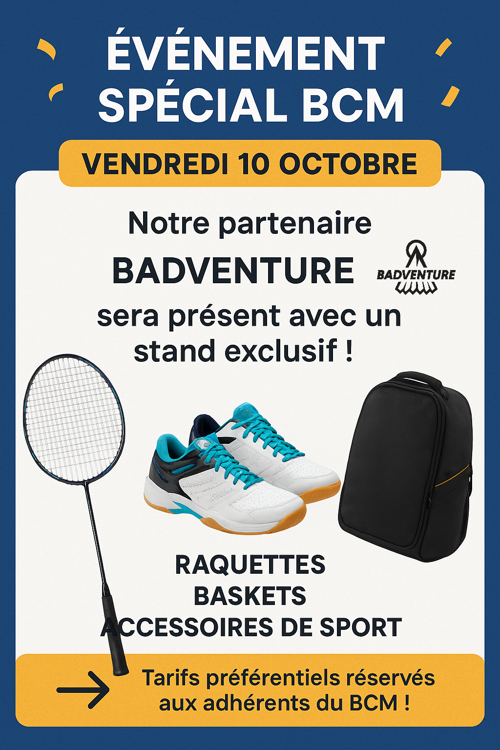 Le stand Badventure (équippements de badminton) se déplace dans notre gymnase.