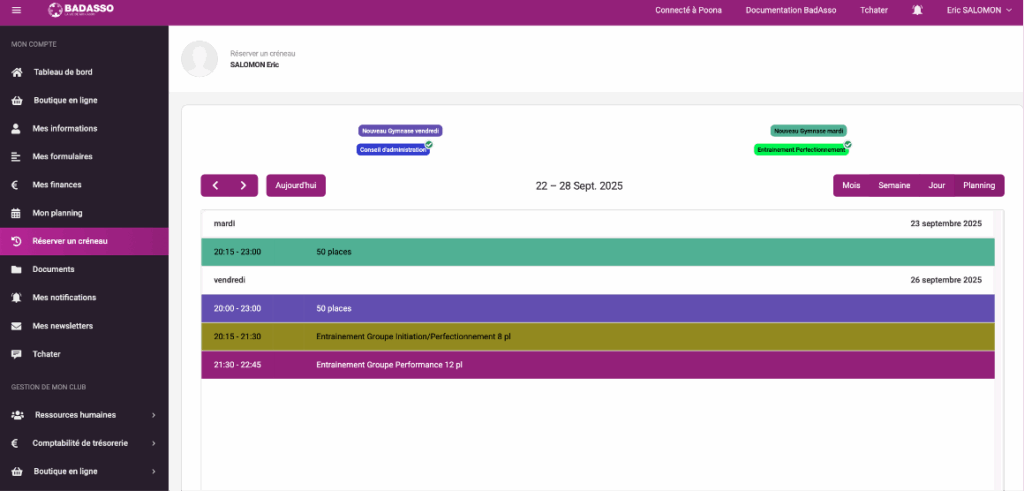 • Vous inscrire aux séances : Passer par l’onglet “réserver un créneau”  pour réserver votre place.